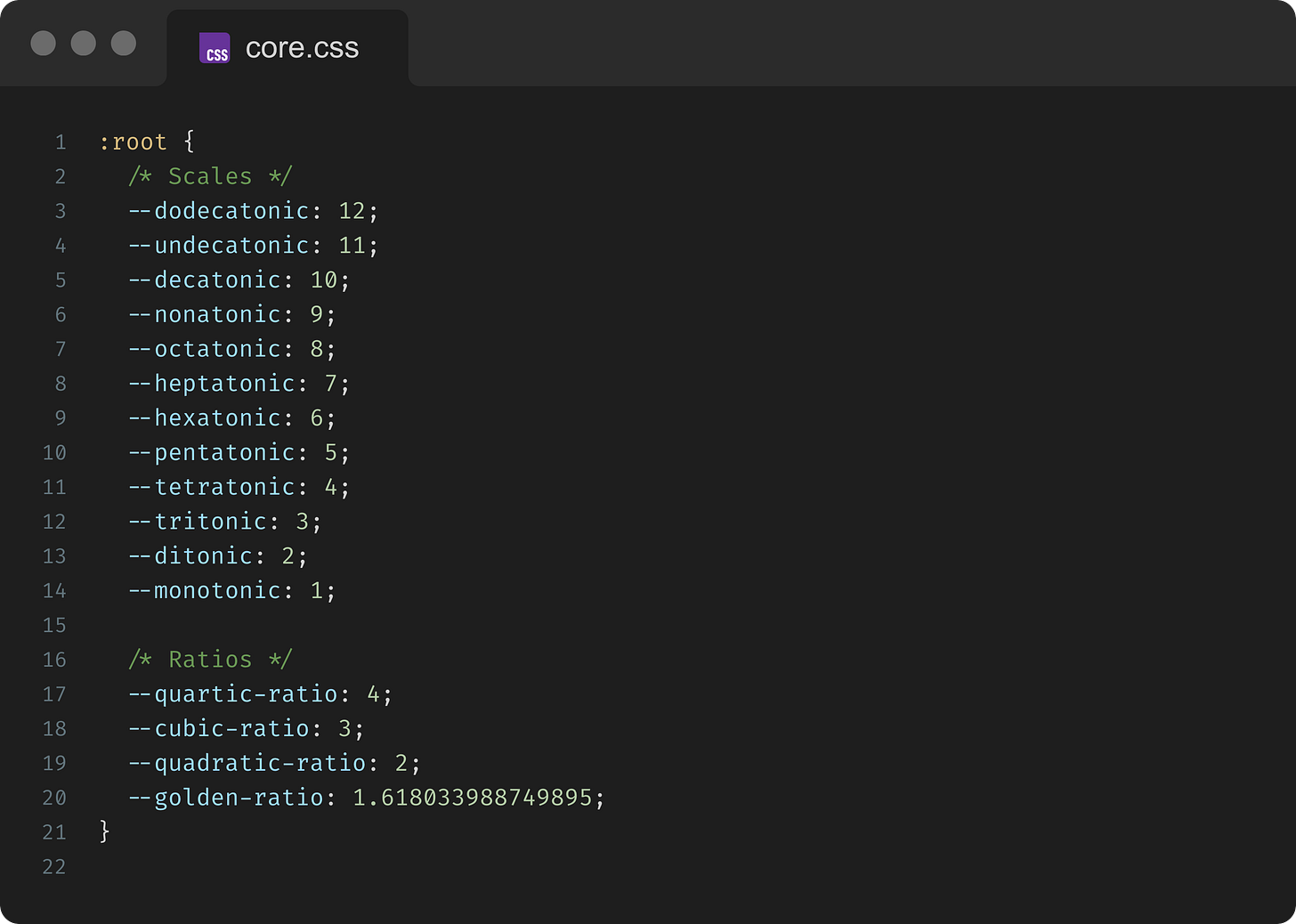 Though most prominent in color ramps and type scales, it can just as easily apply to spacing units, motion durations, and more.